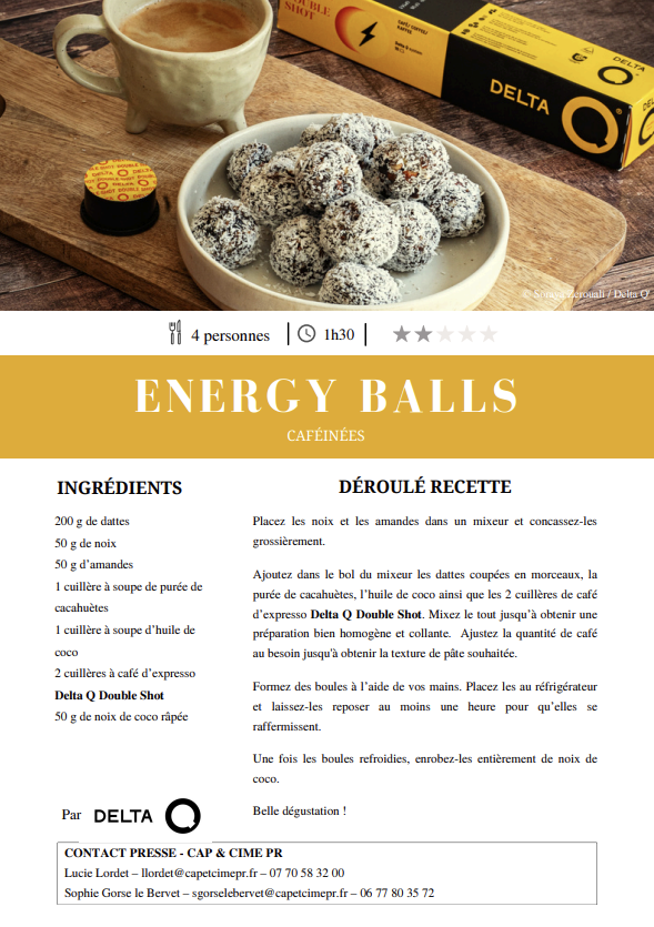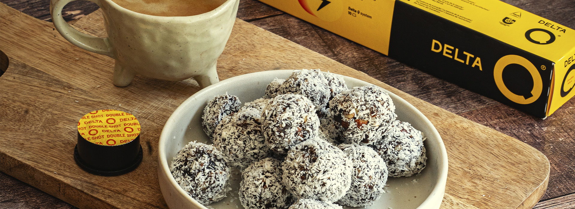 Ajoutez dans le bol du mixeur les dattes coupées en morceaux, la purée de cacahuètes, l’huile de coco ainsi que les 2 cuillères de café d’expresso Delta Q Double Shot. Mixez le tout jusqu’à obtenir une préparation bien homogène et collante. Ajustez la quantité de café au besoin jusqu'à obtenir la texture de pâte souhaitée.